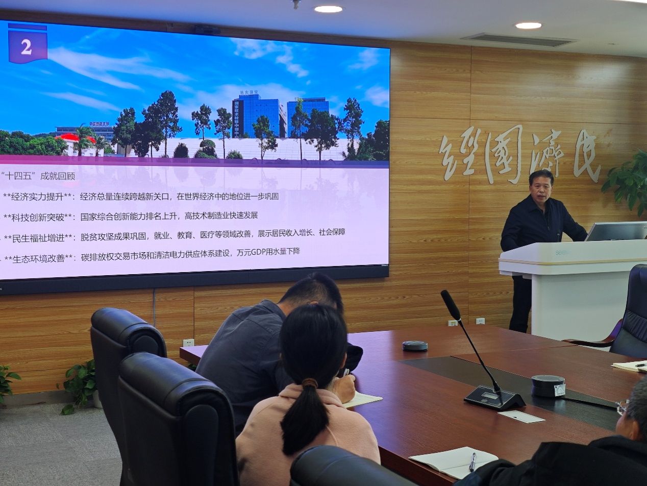 杨昌锐首先系统解读二十届四中全会概况,会议审议通过的《中共中央关于制定国民经济和社会发展第十五个五年规划的建议》,是基本实现社会主义现代化关键时期的顶层设计。他还回顾“十四五”成就,从经济总量跨越、科技创新排名上升,到脱贫攻坚成果巩固、碳排放权交易市场建设,展现国家发展硬实力与民生温度。