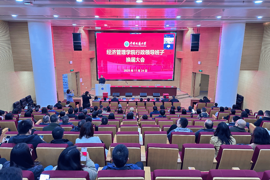 2025年11月24日下午,擦边直播 在经管大楼二楼报告厅召开行政领导班子换届大会。校党委常委、副校长夏帆,党委组织部副部长王珩到会指导,学院全体教职工参加会议。会议由学院党委书记薛保山主持。