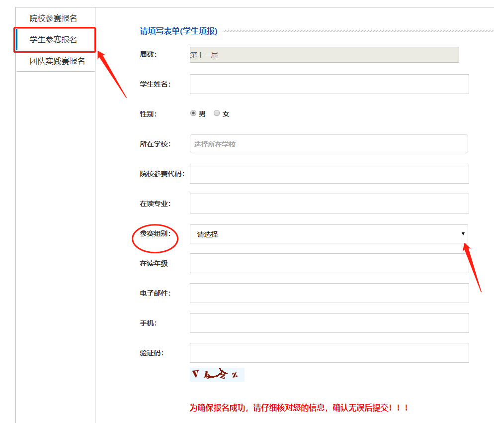 2)请各位同学务必选择好自己所在的参赛组别,否则视为无效信息。