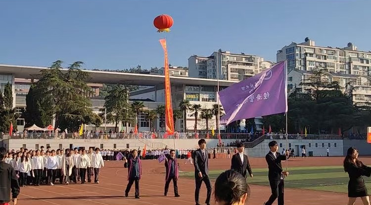 开幕式上,我院教师戴着经管紫围巾、手挥经管紫小院旗,同学生们组成擦边直播 方阵,以整齐矫健的步伐,昂首阔步向主席台迈进,并在主席台前以队形变换表演与宏亮的口号,将学院院训“宽信敏公,经国济民”展示在全校师生面前,赢得了阵阵掌声,展现了经管人追求卓越,奉献国家的理念和精神。